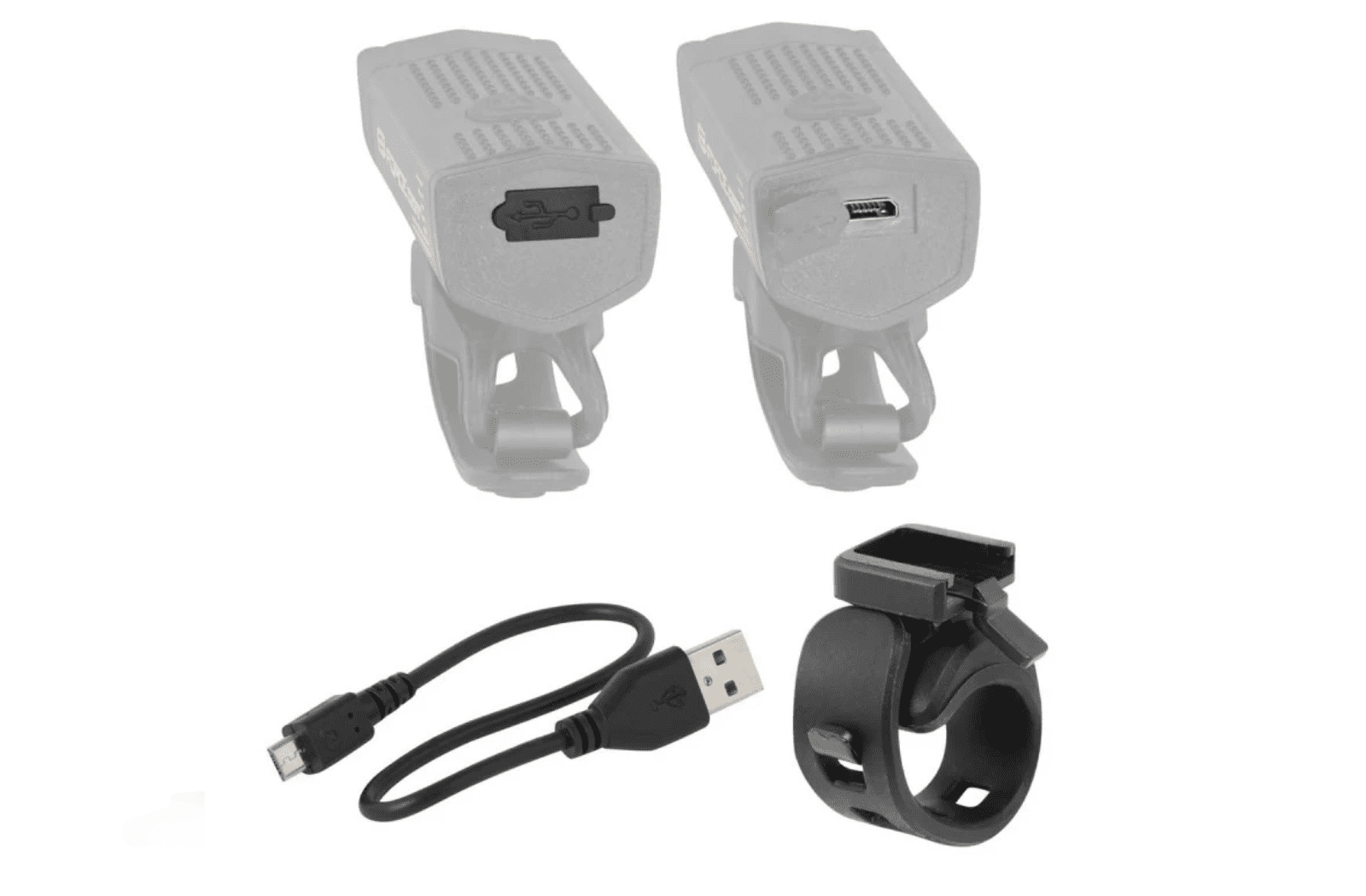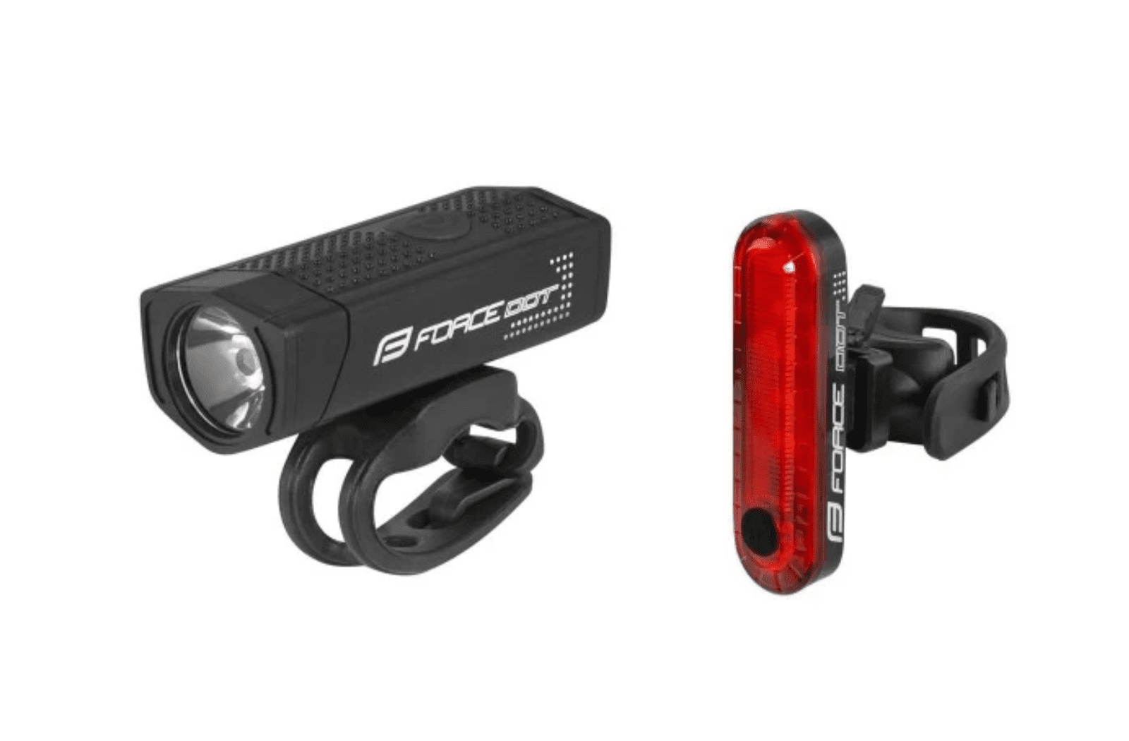 Εμπρόσθιο φανάρι 300 Lumen της Force. Η ζωή της μπαταρίας κυμαίνεται από 2 έως 8 ώρες, ανάλογα με την επιλεγμένη λειτουργία, και η φόρτισή της πραγματοποιείται με καλώδιο usb. Έχει δύο λειτουργίες, μία σταθερή και μία παλλόμενη.